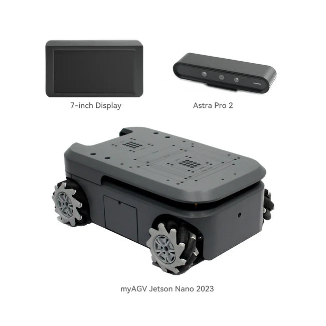 myAGV Jetson Nano 2023 is powered by the NVIDIA® Jetson Nano B01 4GB core board and runs on the customized Ubuntu Mate 20.04 operating system, tailor-made for robots, providing a smooth and user-friendly experience. myAGV 2023 comes with a variety of features, including 2D mapping and navigation, 3D mapping and navigation, graphical programming, visual software, ROS simulation, gamepad and keyboard control, making it the top choice for research, education, and individual creators.